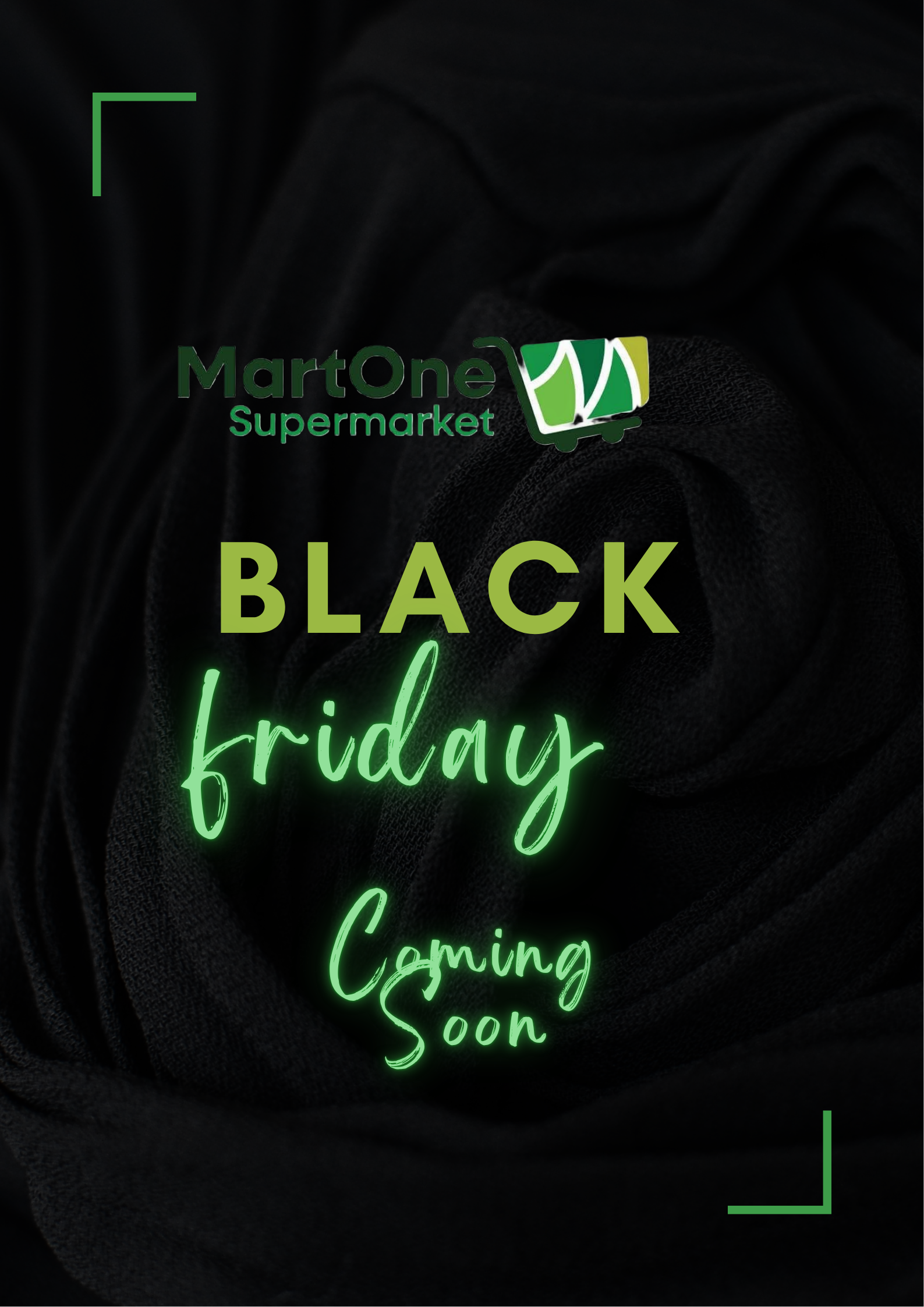 Get ready to shop 🛍️🛒 tIll you drop. Black Friday is coming soon to Mart One Supermarket! Stay Tuned for Unbeatable deals & massive discounts. We Deliver Country Wide at a fee